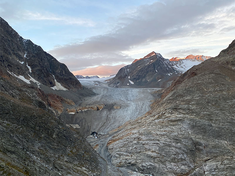 Meran – Zufallhütte Unsere Wanderwoche startet im Zentrum von Meran. Durch Wein- und Obstplantagen wandern wir uns ein und gelangen nach Algund. Mit einem Taxi fahren wir bequem ins Martelltal. Von hier wandern wir bergauf zu unserem ersten Quartier, der Zufallhütte (2.264 m). Wo uns der Hüttenwirt Ulli mit einem Schnaps begrüßt. |